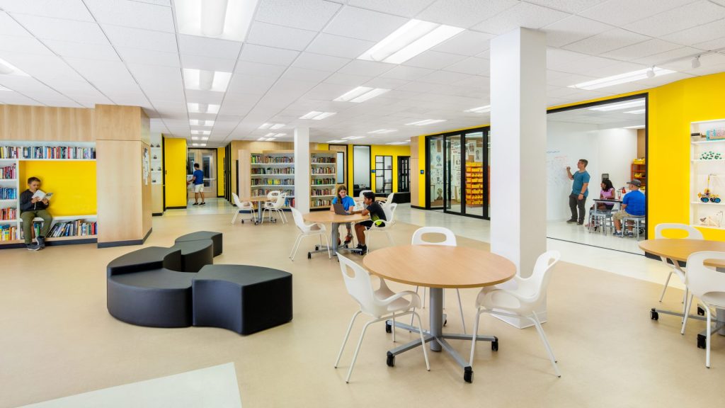 In traditional schools, there are rows of homogeneous classrooms, a cafeteria, gymnasium, and library. How students interact with and feel about those spaces influences how well they learn in any other space in the environment. They aren’t separate. The experience is all connected.
