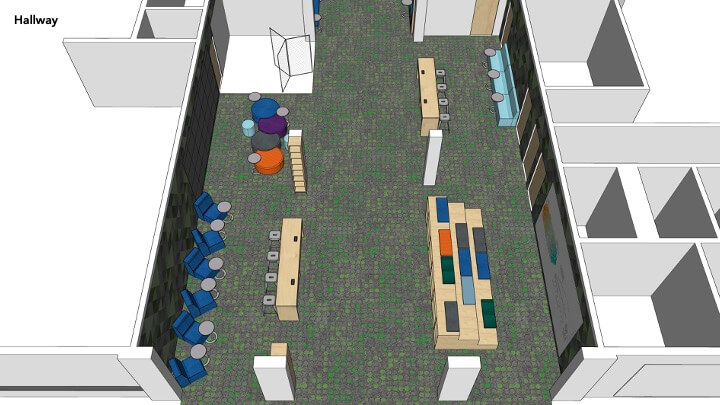 In recent years, trendy designers and “education design consultants” (pseudo-designers who you’ll waste months with and then realize their ideas are fluffy and lack rigor) have suggested maximizing the utilization of the hallway space in order to allow students to find a haven to study and socialize outside of the classroom. Consequently, they’ve pushed schools to increase the width of hallways, and fill that extra space with lounge furniture.